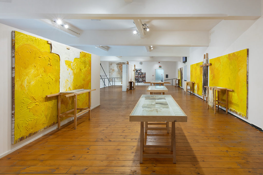 The most substantial core of the works selected for the two-year period from 2018 to 2020 consists of the relicts from the 2017 152.aktion directed by the Austrian maestro in the courtyard of Casa Morra during the exhibition I Giganti dell’arte dal teatro (The Giants of Art from the Theatre) – with works by Shimamoto, materials and concepts from the Living Theatre, and relicts from the Orgien Mysterien Theater – coinciding with the second year of the Cento anni di mostre/Il gioco dell’oca (100 years of exhibitions/The snakes and ladders game) project